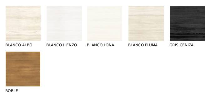 Para todos los módulos de este dormitorio estarán disponibles todos los acabados detallados al final de la descripción del producto. Para la compra directa online, solo están disponibles los acabados tal y como se muestra en la imagen principal. En caso de querer orto acabado diferente no dudes en consultarnos.