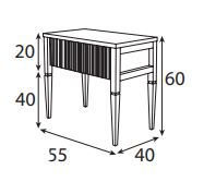 Las mesitas de noche completan el conjunto con un equilibrio perfecto entre modernidad y exclusividad. Su tapa de piedra introduce un toque natural y lujoso, mientras que el frente grabado, en un cálido tono anaranjado, añade textura y dinamismo al espacio. La combinación del color oscuro del armazón y los matices anaranjados del frente crea un contraste elegante, ideal para quienes buscan un dormitorio con carácter propio.