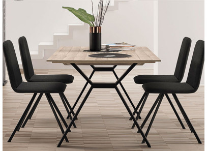 La encimera de esta mesa está fabricada en melamina de 7 cm de grosor, aunque también cabe la posibilidad de cambiarla por chapa natural, lo que supondría un cambio en el precio total del producto. En cuanto a la estructura, es de metal, situada en la zona central para no molestar a ninguno de los comensales. Por último, cabe destacar que cuenta con un extensible de 70 cm, también de melamina, para aumentar la superficie de la mesa en las ocasiones que así lo necesites.