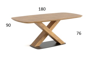 El verdadero protagonismo arquitectónico de esta pieza reside en su importante base. La mesa se sustenta sobre un robusto y escultural pie central en forma de X, un diseño inteligente que no solo aporta un gran atractivo visual de carácter contemporáneo, sino que también resulta extremadamente práctico al facilitar la colocación de las sillas y garantizar la máxima libertad de movimiento para las piernas de los comensales. Para coronar este juego de volúmenes y texturas, el soporte plano que asienta la estructura al suelo presenta un sofisticado acabado lacado en color Negro Ébano. Este detalle oscuro crea un contraste perfecto con la luminosidad del roble, anclando el diseño al espacio y dotando al conjunto de una elegancia rotunda, moderna y atemporal.