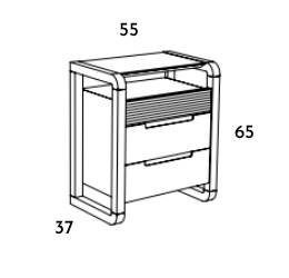 El toque distintivo lo aportan las dos mesitas de noche de tres cajones, que mantienen la estructura en Blanco Albo, un cajón moldurado en Negro Ébano y culminan con una espectacular tapa en porcelánico Taj Mahal. Este material reproduce la belleza veteada del mármol, ofreciendo una superficie elegante, resistente y fácil de cuidar.