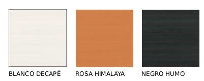 Acabado de las imágenes: Acabado A (Blanco Decapé - Grupo B) y Acabado B (Negro Humo - Grupo B). Los colores elegidos para los acabados serán aplicados en el mueble que corresponda en la imagen de muestra. Acabado de los tiradores: por defecto vendrán en color Plata.