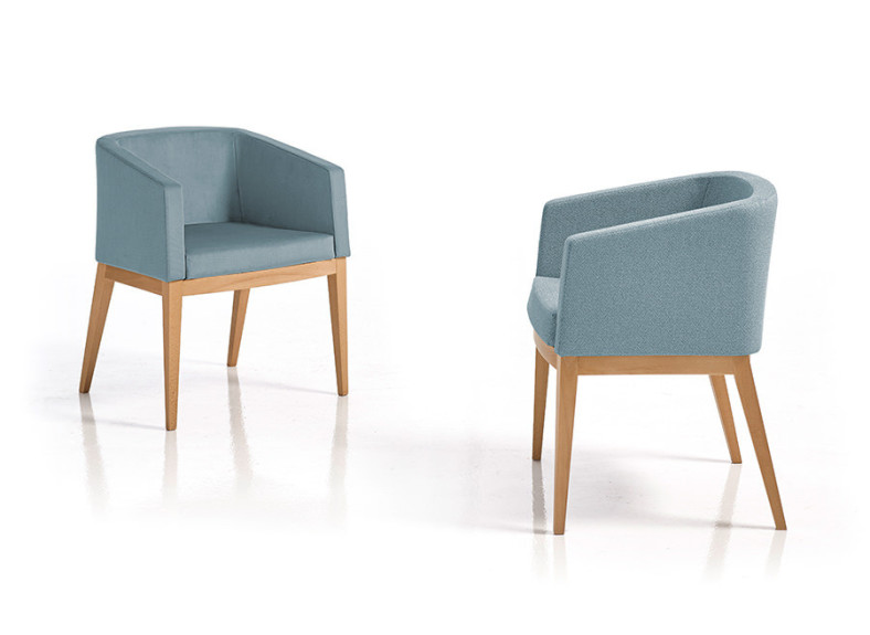 Para las patas estarán disponibles los acabados de melamina, aunque existe la versión en roble, haya y nogal (consúltanos si así lo deseas). Por otro lado, para el tapizado del respaldo y asiento estarán disponibles todas las telas que se muestran a continuación. Para cualquier acabado o tapizado diferente no dudes en consultarnos.