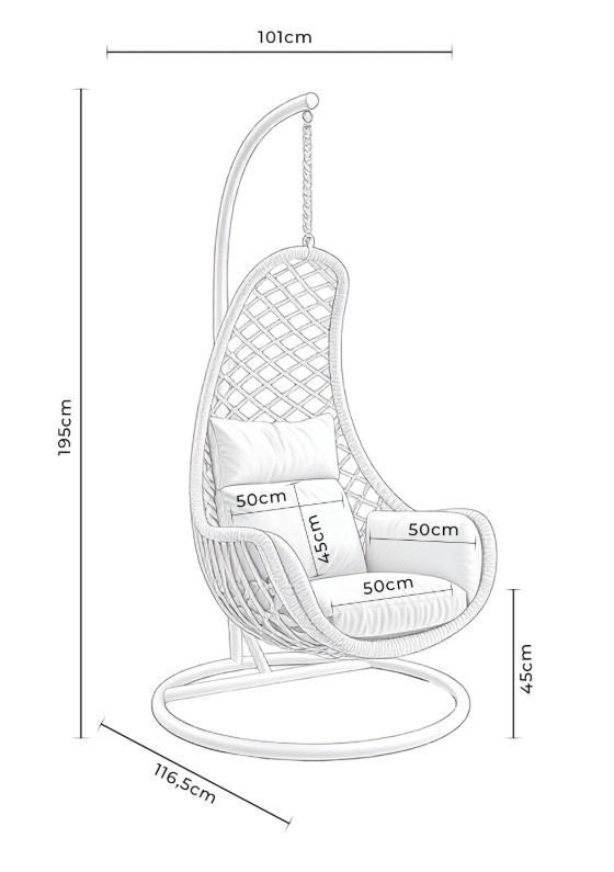 Su confort es inigualable gracias al conjunto de cojines acolchados desenfundables, diseñados específicamente para adaptarse a la forma ergonómica del huevo y proporcionar un apoyo lumbar y cervical perfecto mientras disfrutas de un libro o un café junto a la piscina.